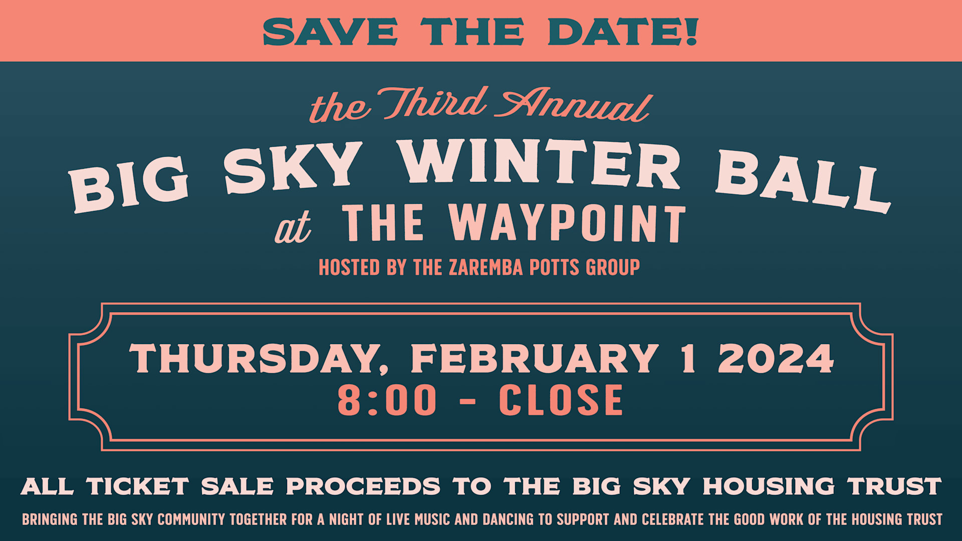 The Big Sky Housing Trust along with the Zaremba Potts Group is hosting the 3rd Annual Big Sky Winter Ball to raise funds to support housing with the Big Sky Community Housing Trust.